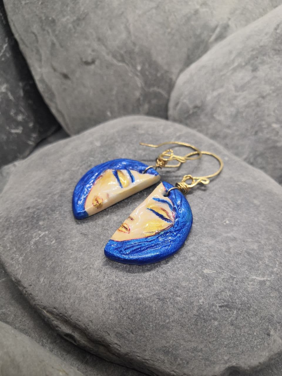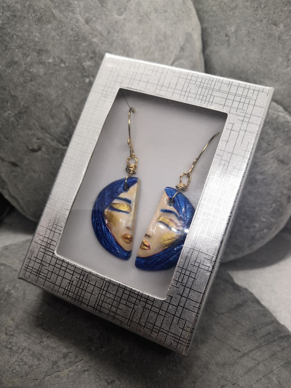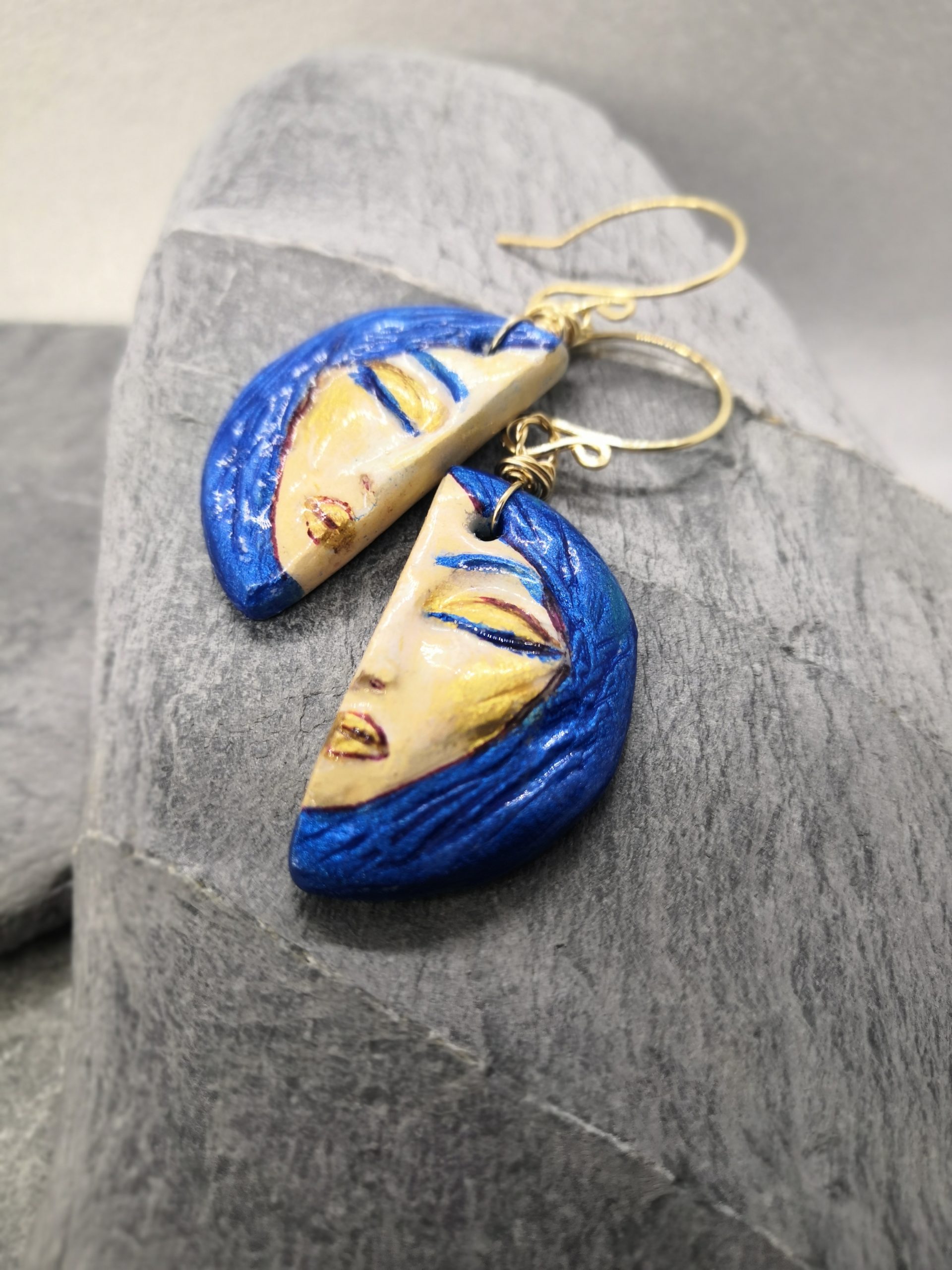 Let yourself be captivated by Pensive Muse—a pair of earrings that hold more than colour and shape. Each features a delicate, hand-painted miniature portrait on Artight clay, sealed in glossy UV resin to preserve every brushstroke.