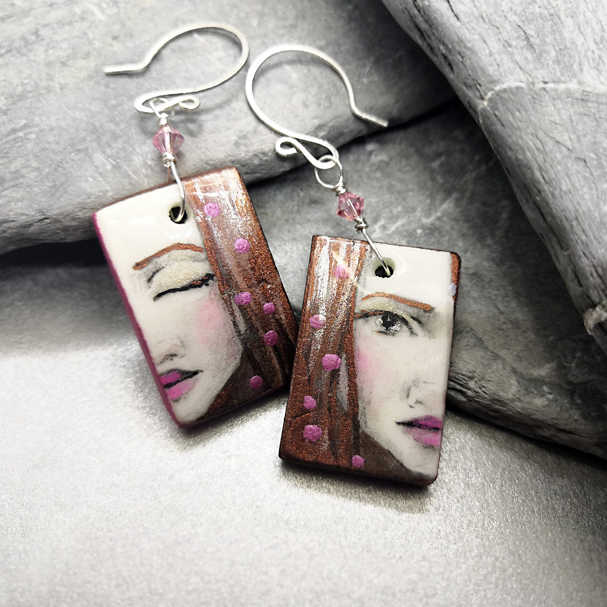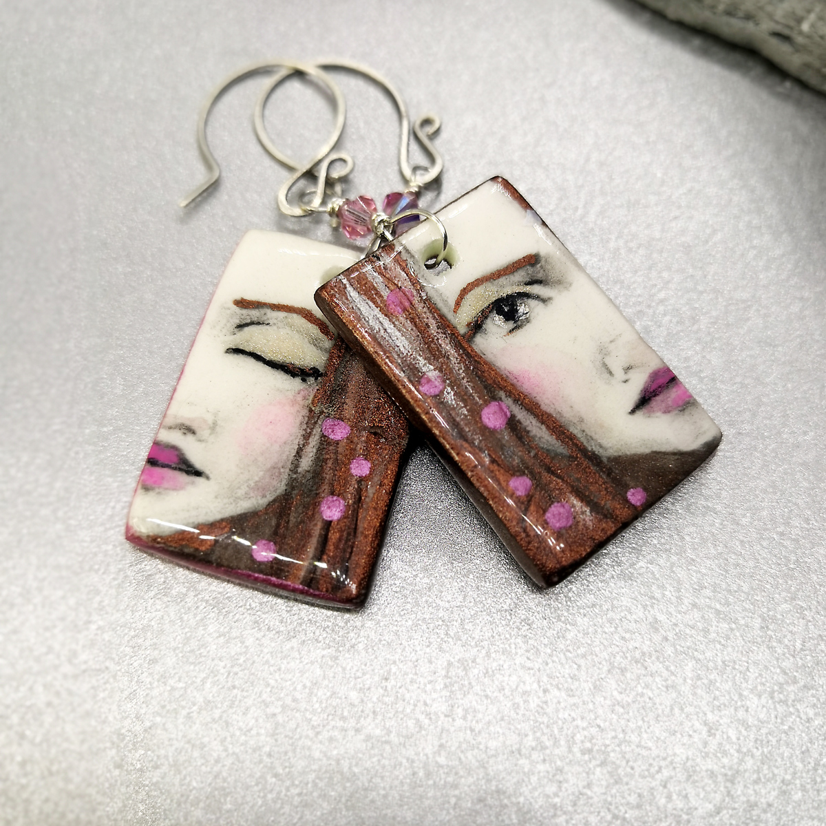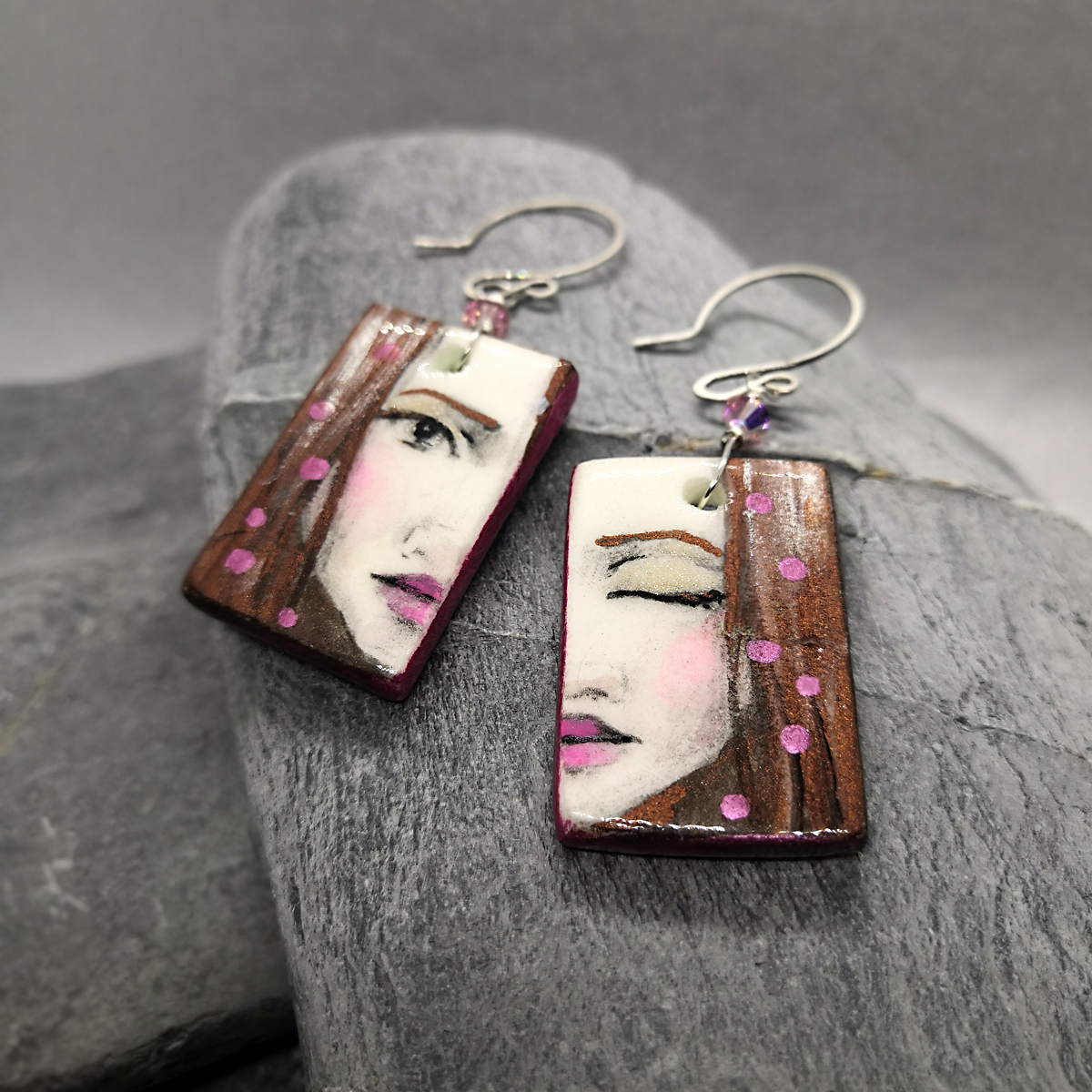 These earrings are wearable poetry, born from the tension between intimacy and distance. Each face is shaped and painted by hand, making every pair truly one of a kind.